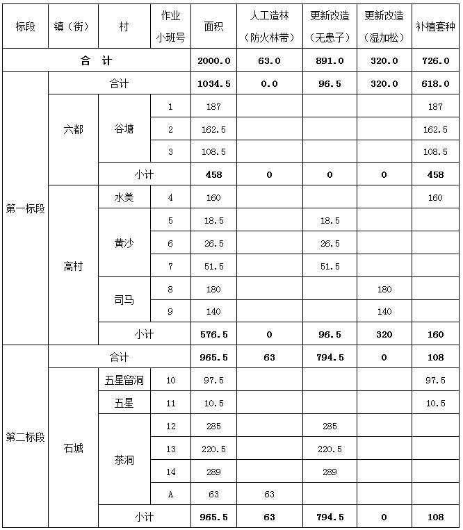 (二)、采購(gòu)文件第二章 用戶需求書(shū)P7中“四、云安區(qū)2020年森林碳匯重點(diǎn)生態(tài)工程項(xiàng)目要求--(四)建設(shè)工程量”